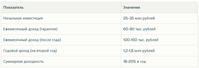 Важно: это расчеты минимальной гарантированной ставки. По факту при более активной сдаче в аренду ставки выше на 20-30%.