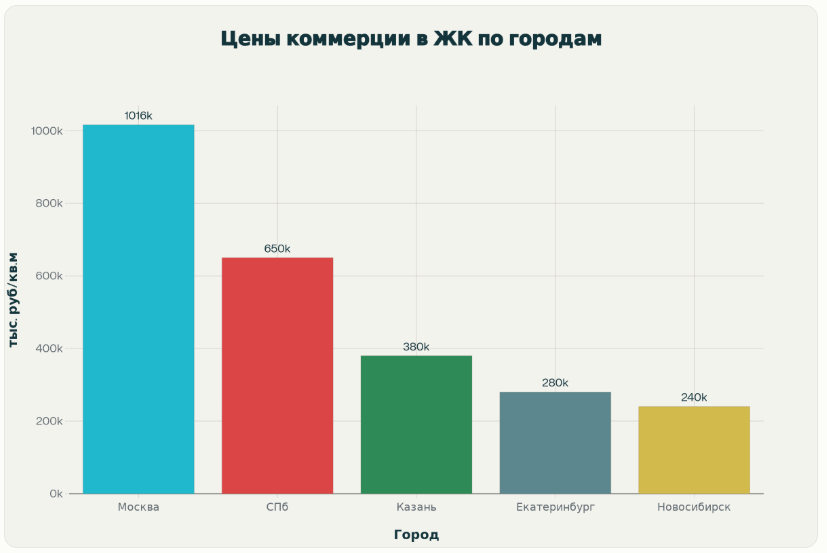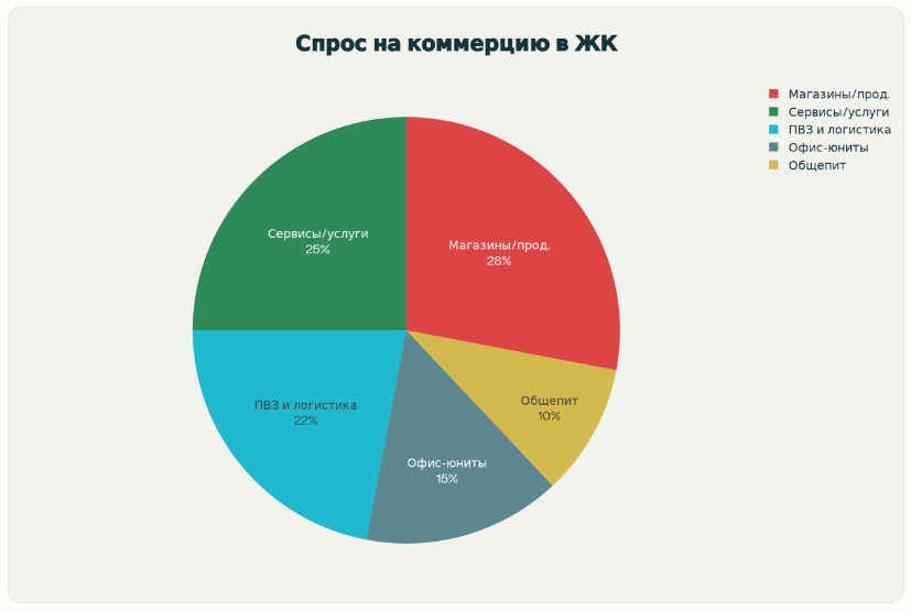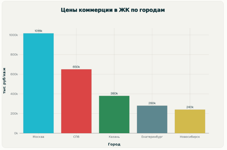 Рынок встроенной коммерции в ЖК России в 2025 году характеризуется высокой избирательностью и географической поляризацией: