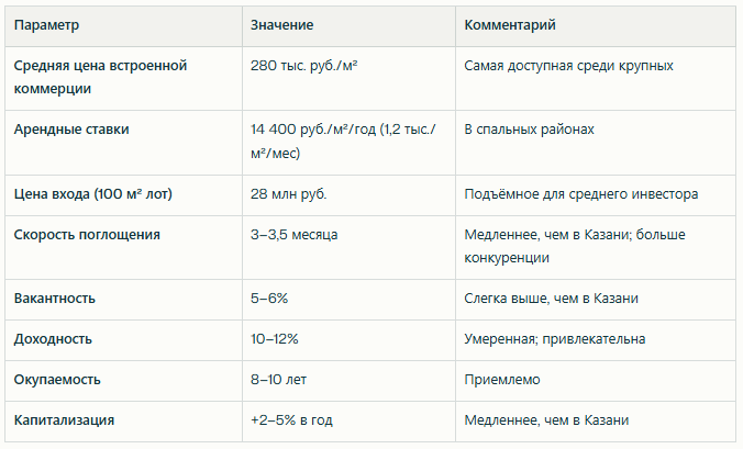 - Казань: высокая доходность и рост; 12–14% + 8–15%; подходит для агрессивных инвесторов