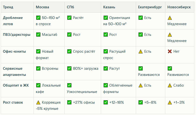 8. КЛЮЧЕВЫЕ ТРЕНДЫ ПО ГОРОДАМ (2025–2026)