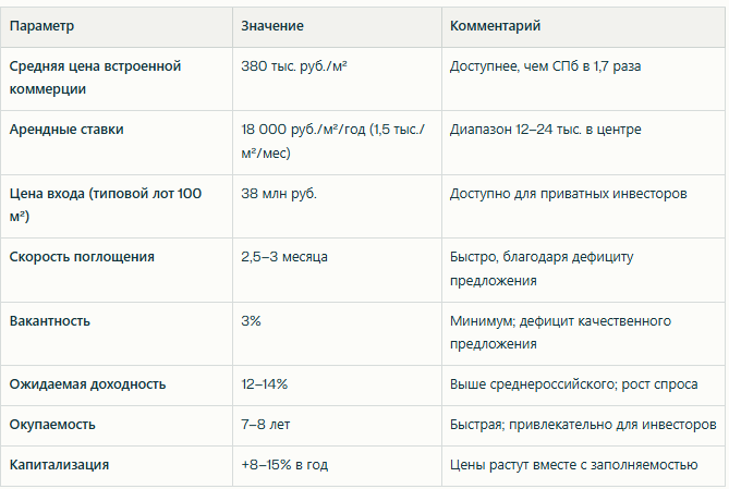 - Аренда: до 150–160 тыс. руб./м²/год (12,5–13,3 тыс./м²/мес)