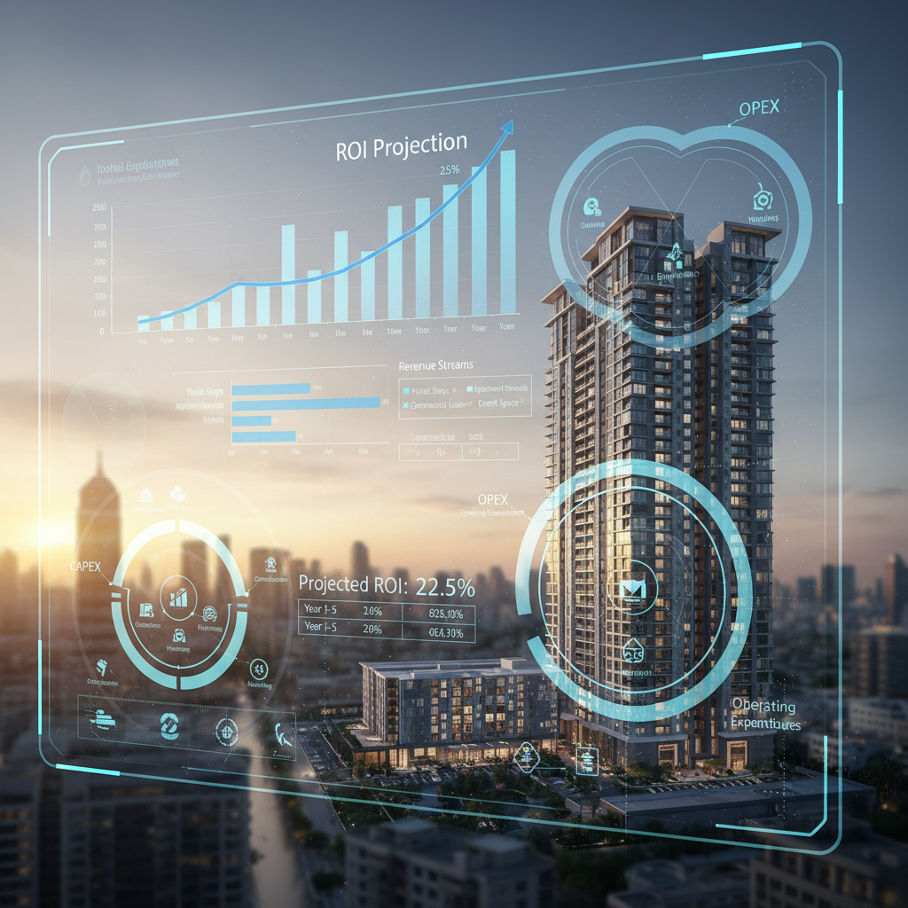 Реалистичный ROI для апарт-отелей составляет 12–22% в год, при сроке окупаемости 5–8 лет (или 3–5 лет при модели продажи юнитов).