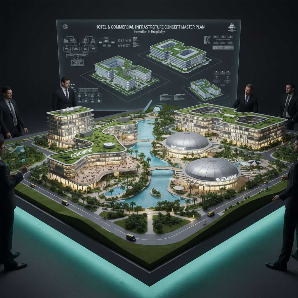 Концепции коммерческих объектов и общественных пространств — интеграция ресторанов, SPA, конференц-залов, коворкинга и других объектов в логичную и доходную экосистему.